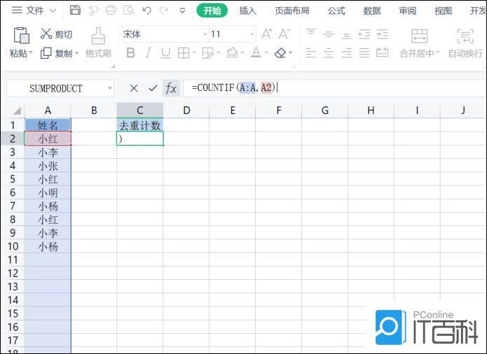 2.打开表格,查找出A列姓名中每个姓名的重复个数。
