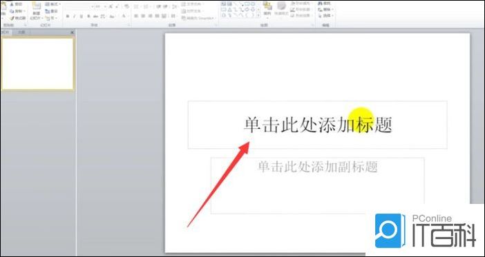 1、打开ppt,在首页创建一个新的ppt,直接在“单击此处添加标题”中输入所需的文本。