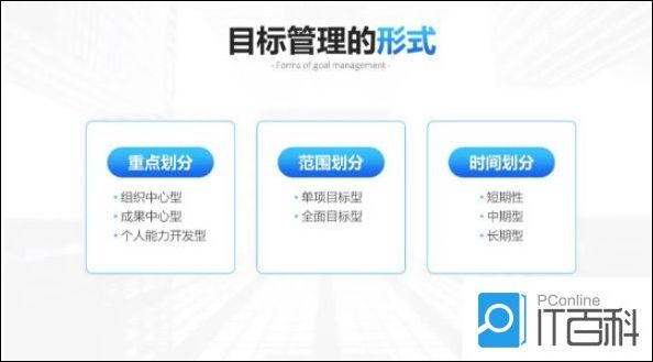 看了稿子,可以知道目标管理的形式有三种划分方式,这里需要划分三个同级的内容块。