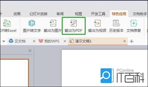 在做完PPT后点击工具栏中的“特色应用”,选择“输出为PDF文件”,会弹出对话框,设置好后点击确定即可。