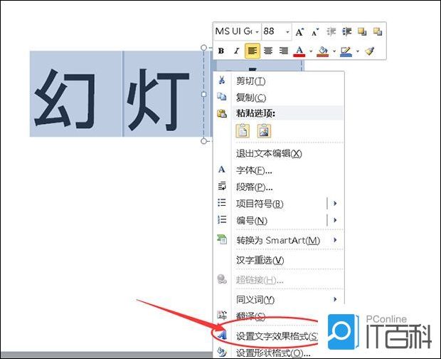 6、同时选择多个文本框,然后右键单击鼠标,选择设置文本效果格式。