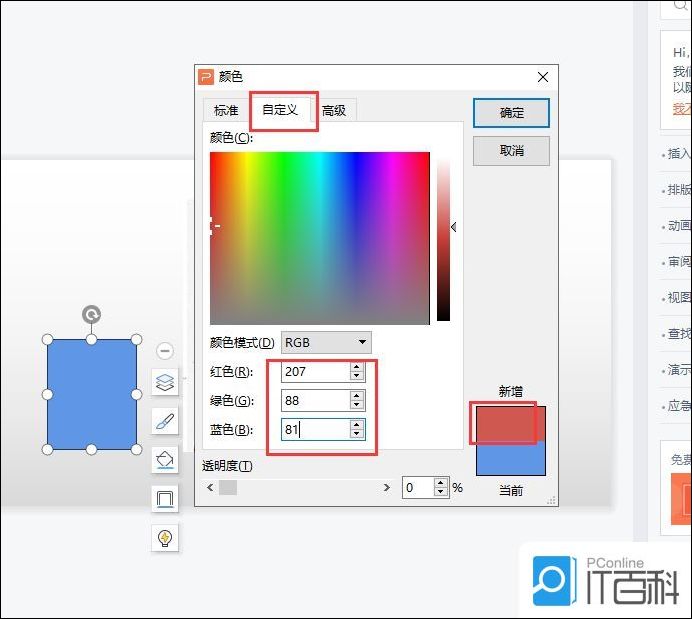 7、切换到自定义,然后输入刚才的RGB就可以获取到需要吸取的颜色了