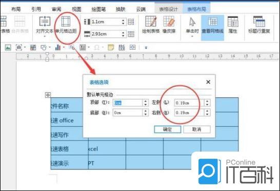 2.按照习惯进行这个操作:先选中表格,点击表格布局中的“单元格边距”,接着将左侧的值手动修改为0。