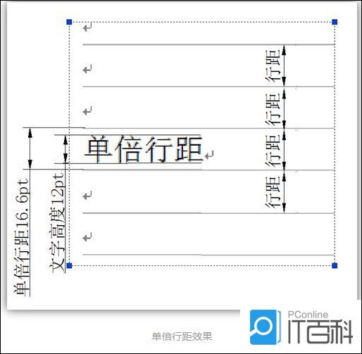 单行间距是指在行网格中设置的行的长度,如下图所示,主体文本高度为12磅(pt),并且将每页行数设置为42行的最大值,此时最小行长度为16.6磅.将行距设为单倍,因此,如图所示,单倍行距为16.6磅(pt),字在行内垂直居中,每行上下各有2.3磅(pt)的空格.实际上,单倍行间距比正文字号稍大,保证了文本的正常显示.