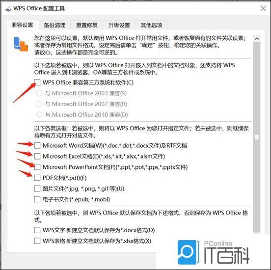 4、在弹出的页面中点击取消“Wps Office兼容第三方系统和软件”前的方框,然后就完成了。