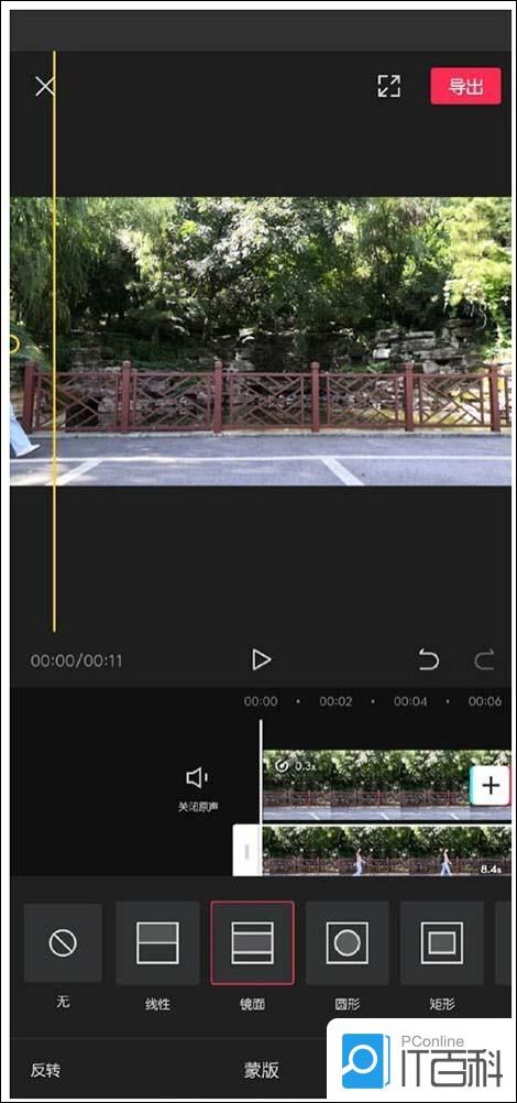 09点击「蒙版」按钮,进入「蒙版」界面,选择「镜面」蒙版。