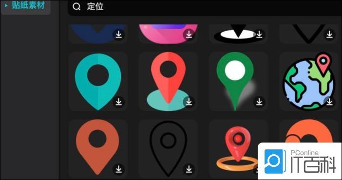 在弹出贴纸素材中,可输入位置或定位查找相关图标素材。