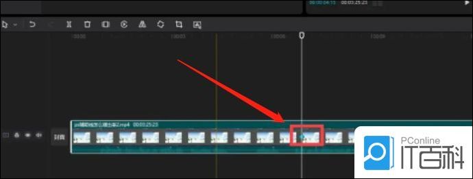 1. 点击时间轴中需要添加关键帧的视频,将帧头放置在需要添加关键帧的位置: