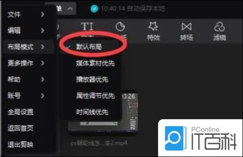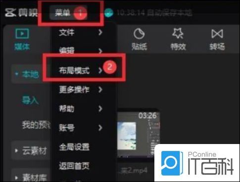1. 点击剪映左上角的菜单,可以看到菜单下面的布局模式。点击: