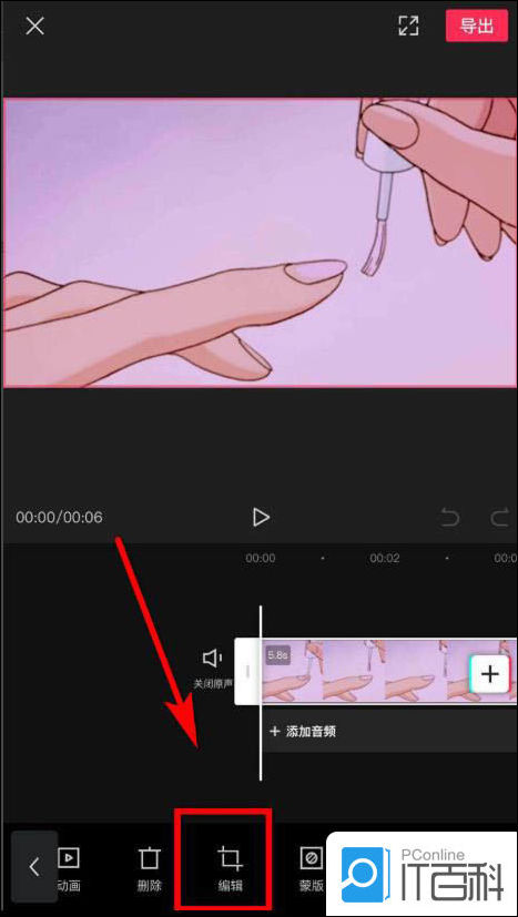 3、点击进入编辑菜单,对素材进行设置,如下图所示