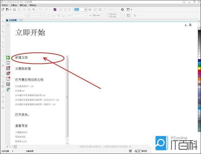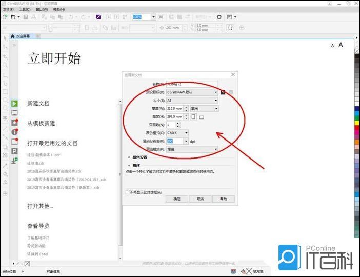 1、打开CorelDRAW X8 软件,点击【新建文档】,按图示参数新建一个cdr文档(如图所示);