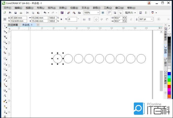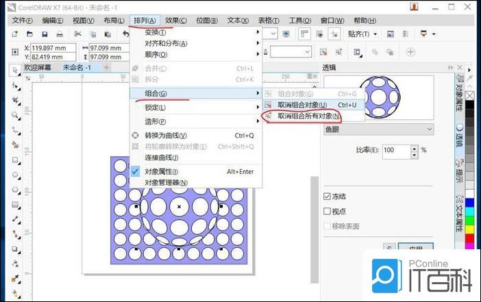 执行排列——组合——取消组合所有对象,右键点击颜色,去掉边框色以及白色底圆,圆圈