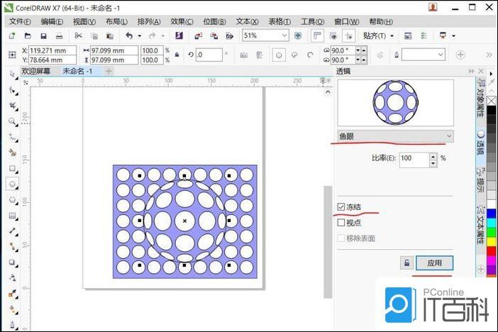 选择透镜效果为鱼眼,勾选冻结,然后应用