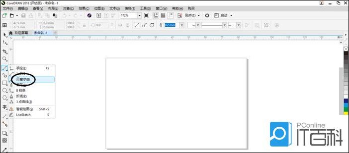 2、在工具选项中选择了“贝塞尔”工具按钮。