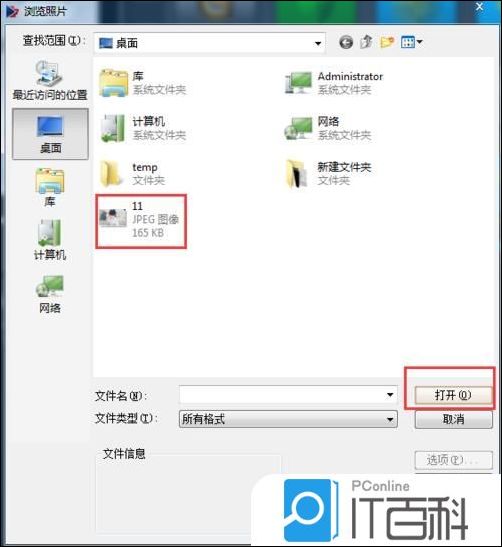 3、出来浏览照片的对话框,选择需要的图片,点击打开;