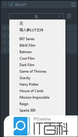 选择3D LUT在下拉菜单中选择一个模板如果你没有找到你想要的模板,你可以将你从其他地方下载下来的3D LUT添加到神剪手中。在下拉选项中,选择“导入新LUT文件”,选择要添加的.CUBE, .3DL文件即可。