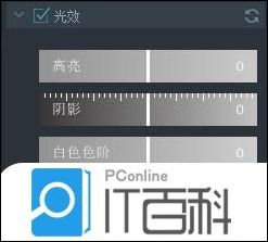 在此面板中,你可以通过调整高亮,阴影,白色色阶和黑色色阶来优化视频中某些区域的光效。 选中 “光效”的选项,然后从左到右拖动滑块进行调整。 负值会增加“高亮/阴影/白色色阶/黑色阶”的效果,反之亦然。