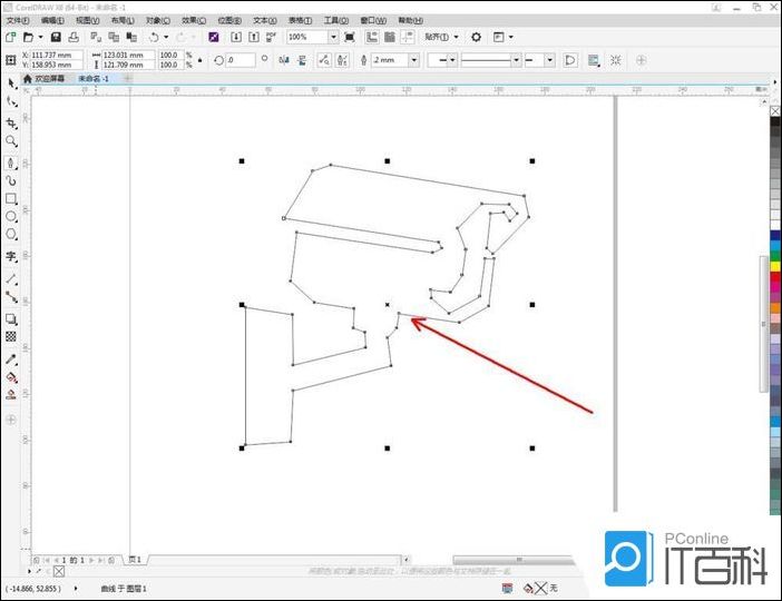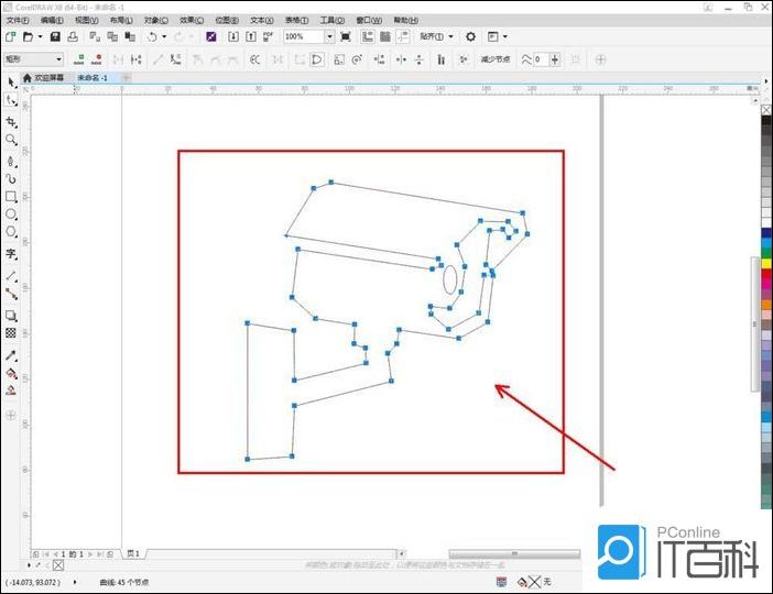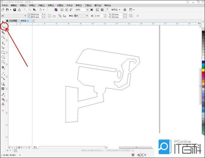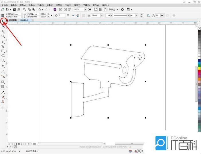 3、选中多边图案,点击【形状工具】,选中图案上的所有点,点击【转换为曲线】将图案转曲后,按图示调整控制点,完成整个监控摄像头轮廓图案的绘制(如图所示);
