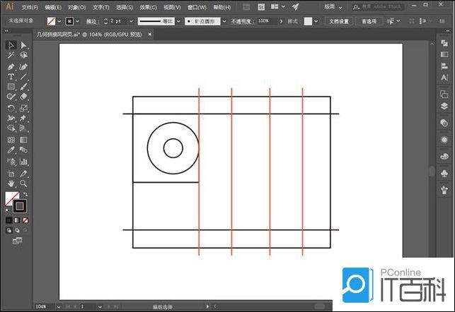 步骤 09选中所有形状,利用形状生成器工具对所有形状和线段进行重新组合生成新的形状(如图所示),利用选择工具删除矩形边框外的所有零碎线段。