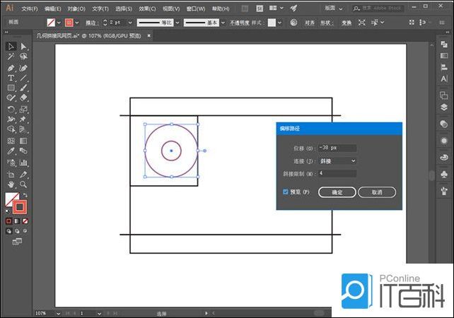 步骤 05选中圆1,在对象–路径中选择偏移路径,将圆1偏移-38px,得到圆2。