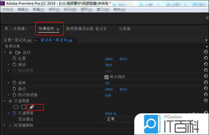 4、然后选择,【 效果控件 】,【 不透明度 】中的 钢笔工具。
