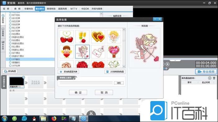 3、选择合适的 贴图 ,确定之后,贴图就会出现在视频预览区域