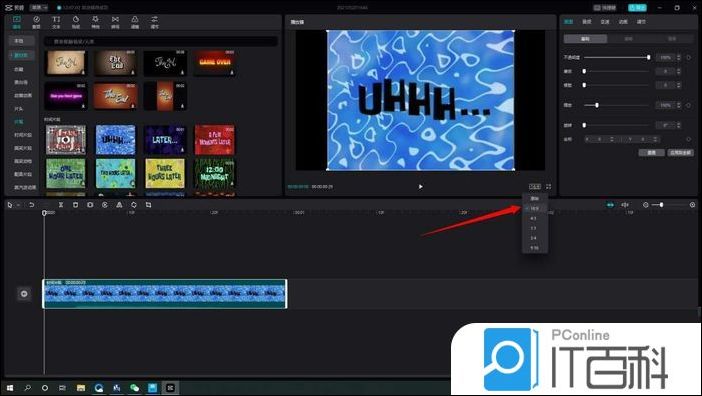 2.点击预览窗口右下角, 设置视频比例