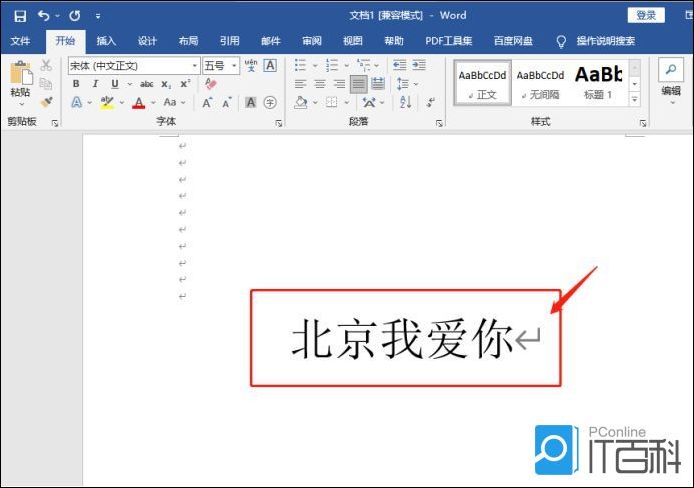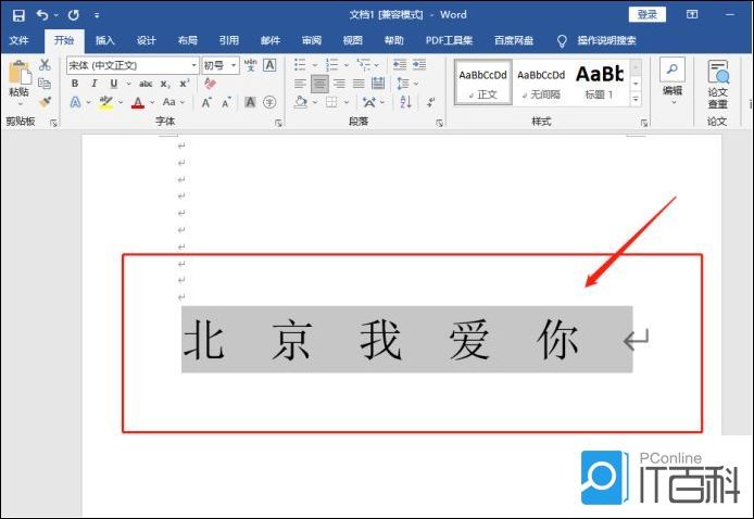 2、下一步,在输入需要调整字间距。这里,输入文字【北京我爱你】!为了方便查看功能,可以适当调整字体大小。如下图所示。