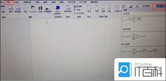 3、点击【插入】之后,我们工具选项右侧看,可以找到【公式】,然后我们点击【插入新公式】。
