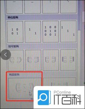 例如系统显示的有系数矩阵,单位矩阵等,右侧滑动条下拉可以看到分类。我们示例选取一个稀疏矩阵作为示例。