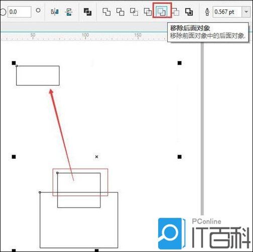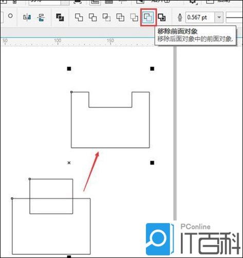 七、第7个工具是【移除前面对象】,和移除后面对象相反,是用于剔除排列在最上方的图形,以及与底层图形重合的部分区域。