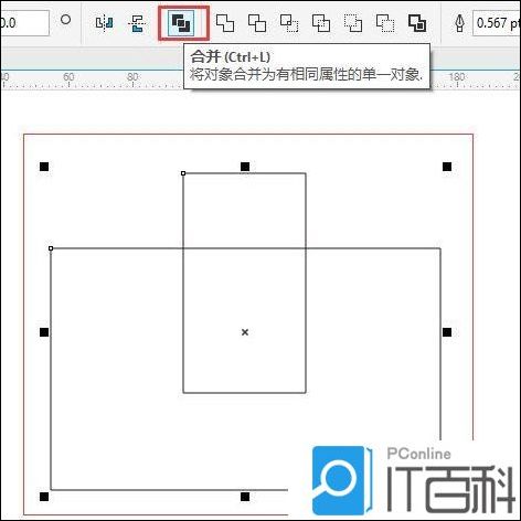 二、第1个工具是【合并】,选中需要合并的两个图案,点击合并,就能将这两个图形合并成一个图形,其外观样式不会发生变化。