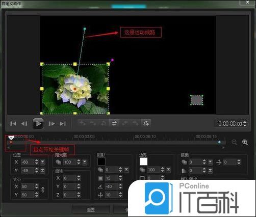 3、从起始帧定位图片的位置,蓝色的线是图片的中心点运动的路径哦