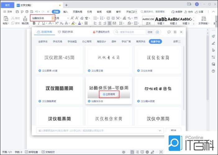 选择好字体后,点击立即使用,等待下载安装后即可在WPS中正常使用。