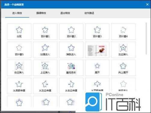 3、然后我们就是选择动画效果了,这里我们可以看到动画效果非常的多,首先我们设置进入效果,这里根据大家需要选择就可以了,然后就是退出效果的设置,这个和进入效果是一样的。