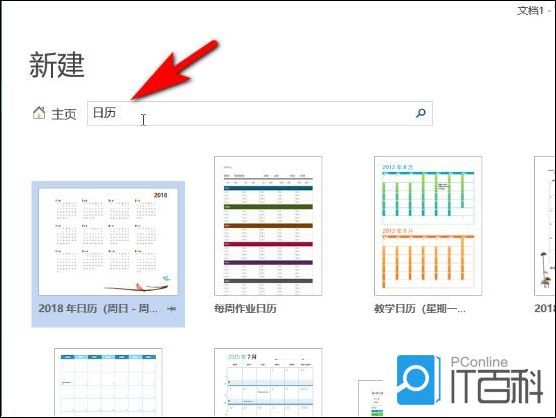 4.在新建工具栏中的搜索栏搜索日历模板,然后在搜索出的日历表中选择所需的日历类型,单击表格新建。如下方图片所示: