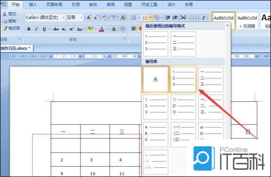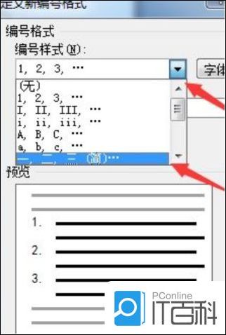 7.依次点击菜单栏:开始→编号库右边小三角→编号库中选择如图所示。如果没有,可以参照步骤3/4/5的选择设置即可。