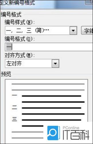 5. 在定义新编号格式窗口中,将编号格式栏中一后面的小点删除。然后点击确定,即可编辑出一至七。然后将七改为日。调整内容位置为居中。