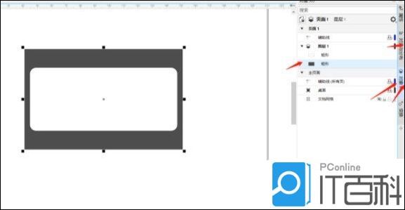三、在泊坞窗对两个矩形的图层进行顺序调整,小矩形在上名将大矩形的颜色填充为70%的黑色,小矩形为白色