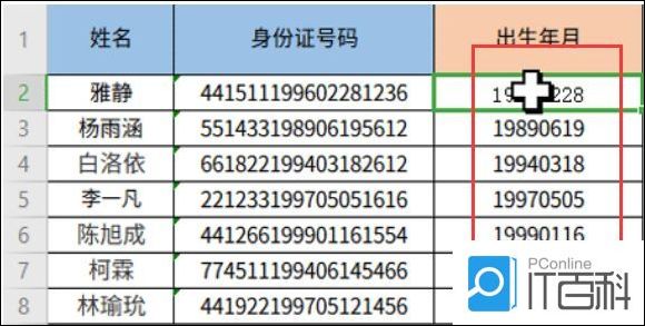 使用“Ctrl+E”键,可以一键快速提取身份证上的月份和年份。