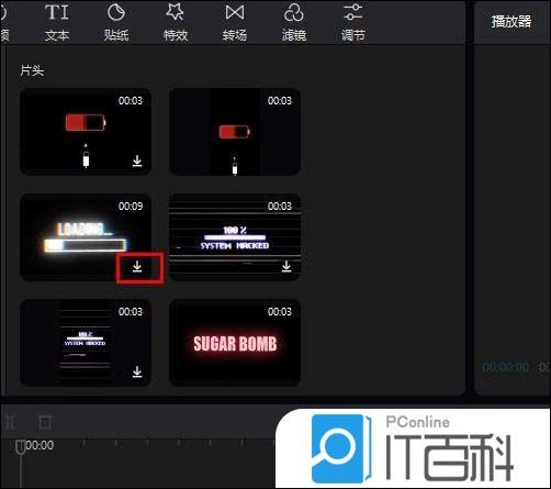 6、在右侧显示的片头类型中选择一个,然后点击下载。