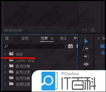 4、打开效果面板后,这里会显示着多个文件夹,效果文件夹,我们点开第一个: 预设