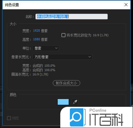 3、弹出 纯色设置窗口 ,在纯色设置中 保持参数默认 ,然后可以随便选择一个 颜色 ,这个对后面的操作没有影响。