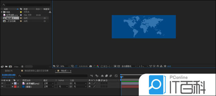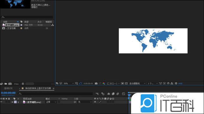 2、 ctrl+i 导入事先准备好的世界地图素材,并拉入时间线面板内;