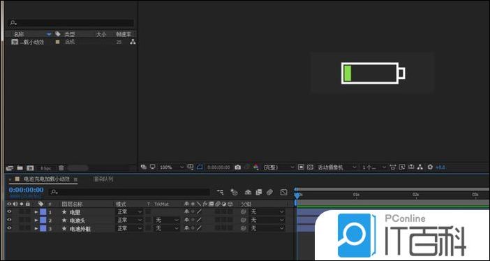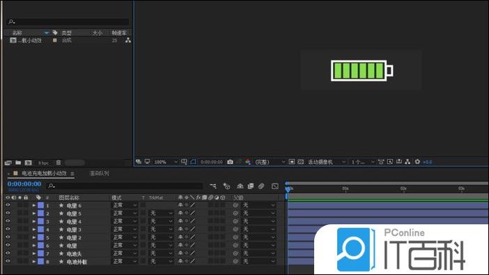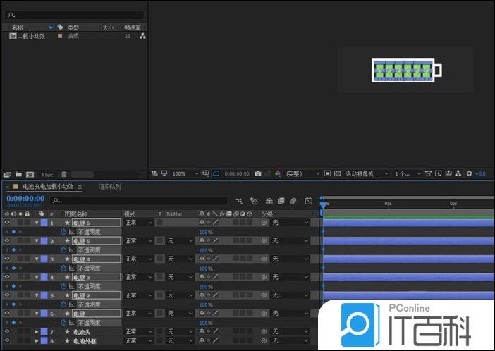 以上就是AE制作一个电池充电加载的动画效果的教程,希望大家喜欢,请继续关注IT百科。