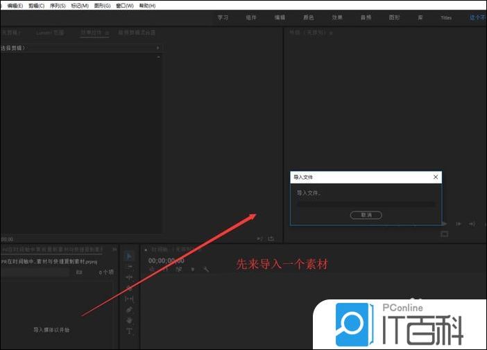 1、双击Premiere软件图标打开新建一个PR项目,然后执行 导入素材命令 ,选择媒体素材导入。