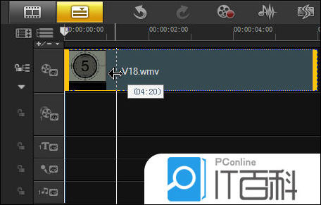 四、用同样方法,将鼠标移至视频素材的末端位置。
