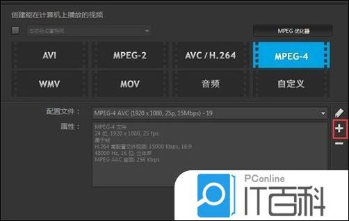 3、在配置文件、属性方框的右边,有加号图标按钮,点击进去。