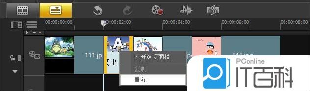 6、对于不需要的转场效果,可以在选中的情况 按删除键就可删除。