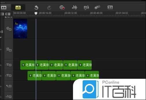 1、在需要加字幕链接的下方标题轨打上字幕内容,如“老莫版权所有请勿擅用”。如下图所示: